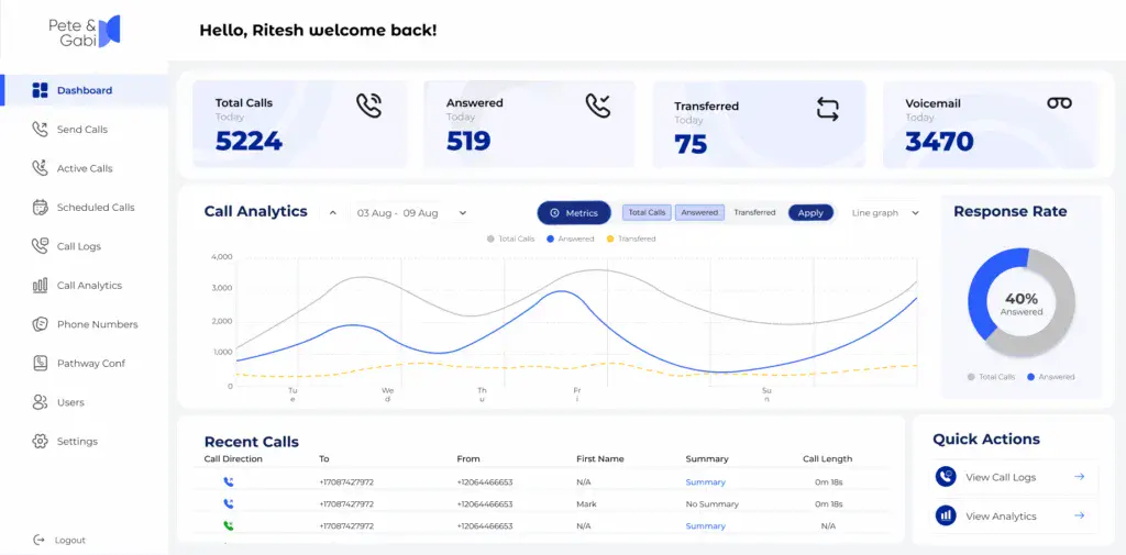 The biggest limitation with traditional voice follow-up is “capacity”. The maximum amount of calls a human representative can make in a single day is limited while AI voice agents have no limits.