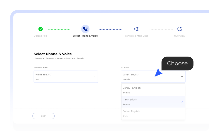Choose from the dropdown list the Outbound Number you want to use for your campaign. Then choose from the AI Personas for your outbound number that best supports your brand personality and/or locality.