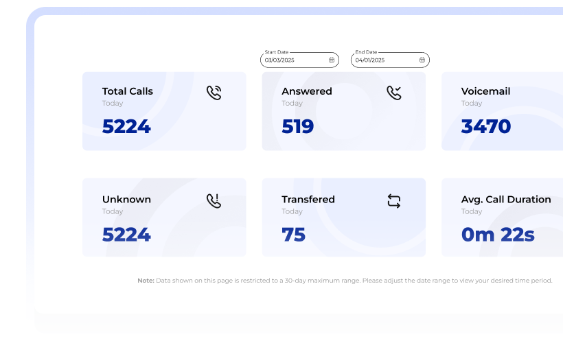 Convert raw voice data from each call into actionable business intelligence. Track the number of times your calls were answered, transferred to another department, and the average length of time spent per call to maximize the return on investment.